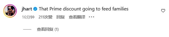 尼克斯球员哈特现身评论区:“这点亚马逊会员折扣可养不活一家人。”