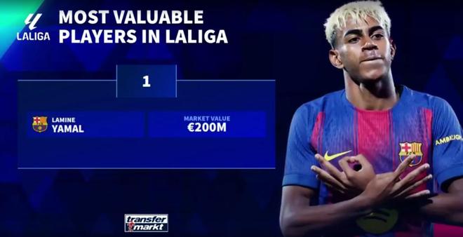 西甲U21球员身价TOP10:亚马尔仍2亿欧居首,巴萨、皇马各4人