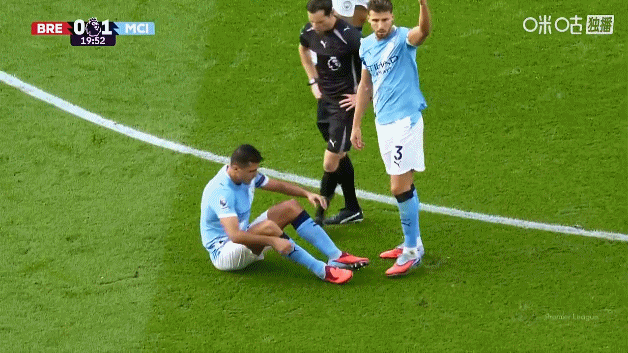 罗德里伤退,面露不甘。
